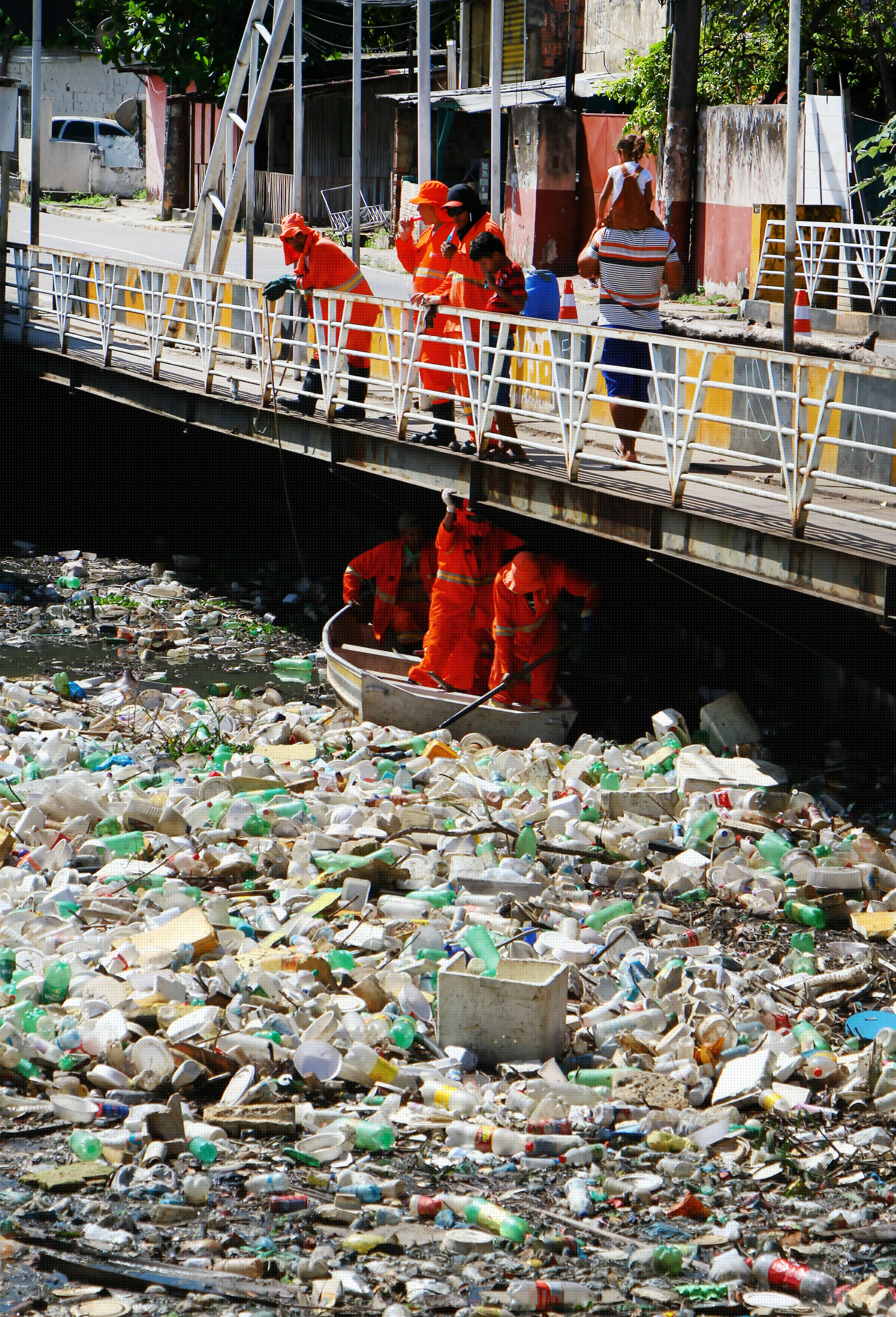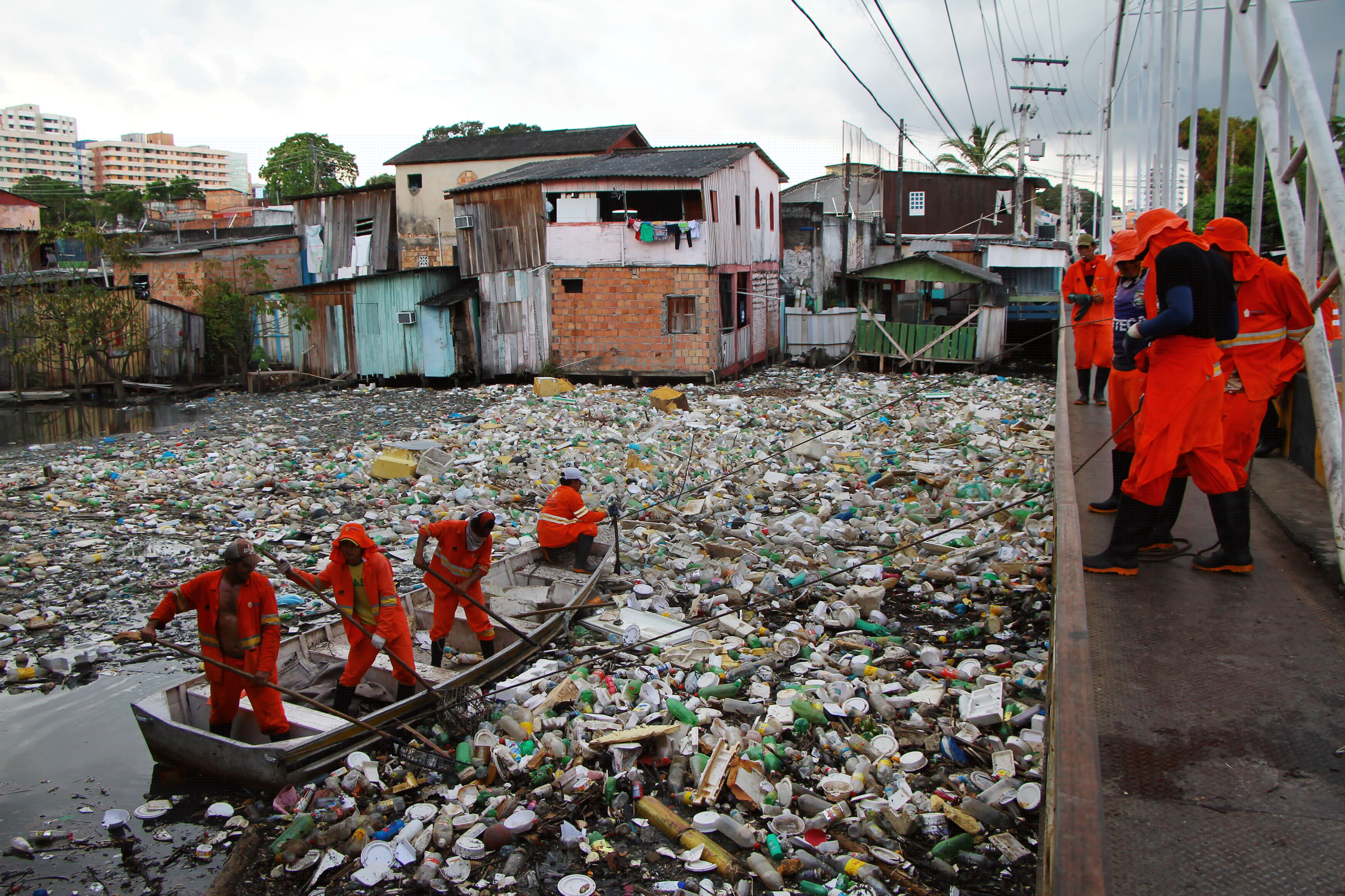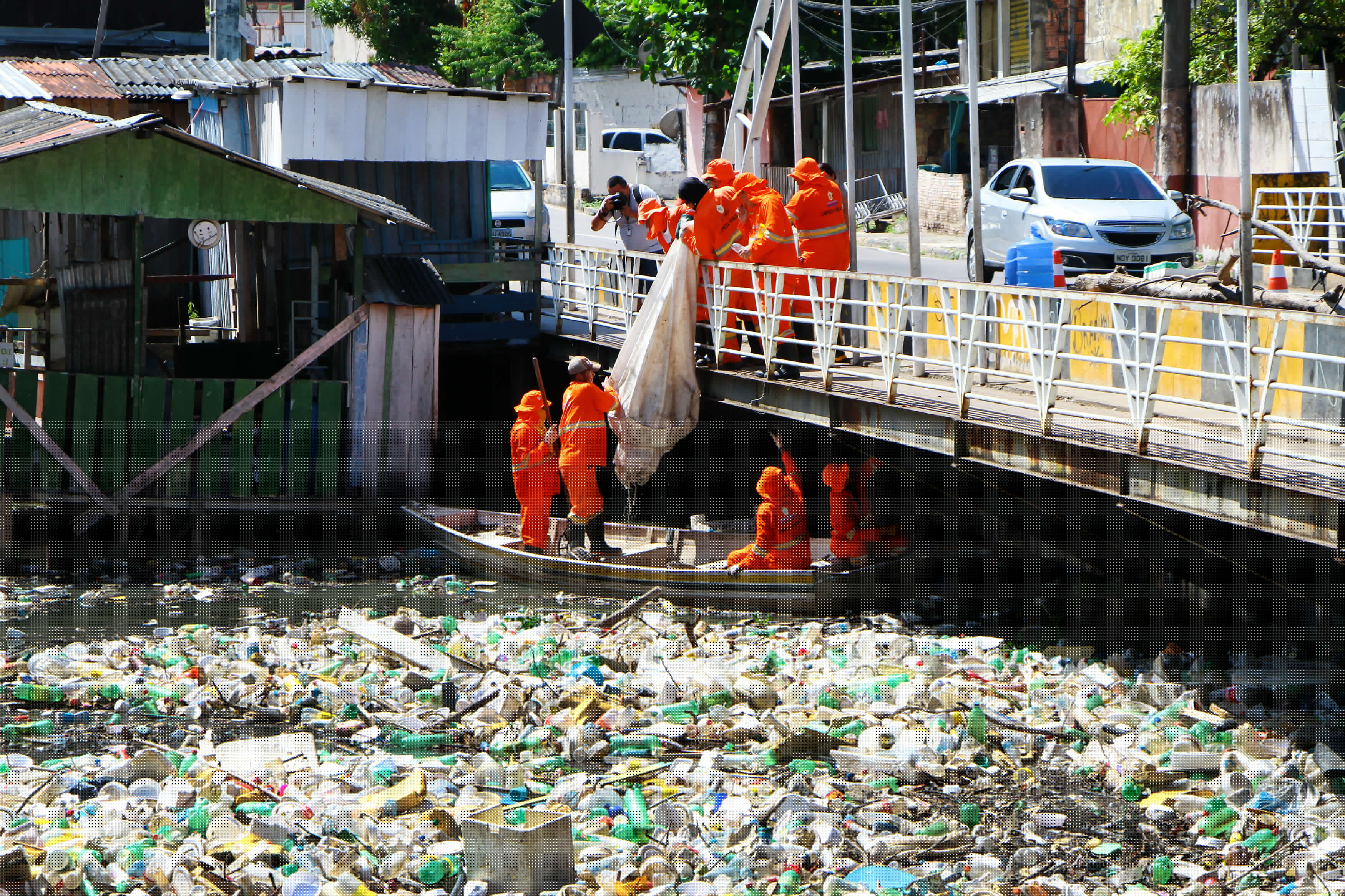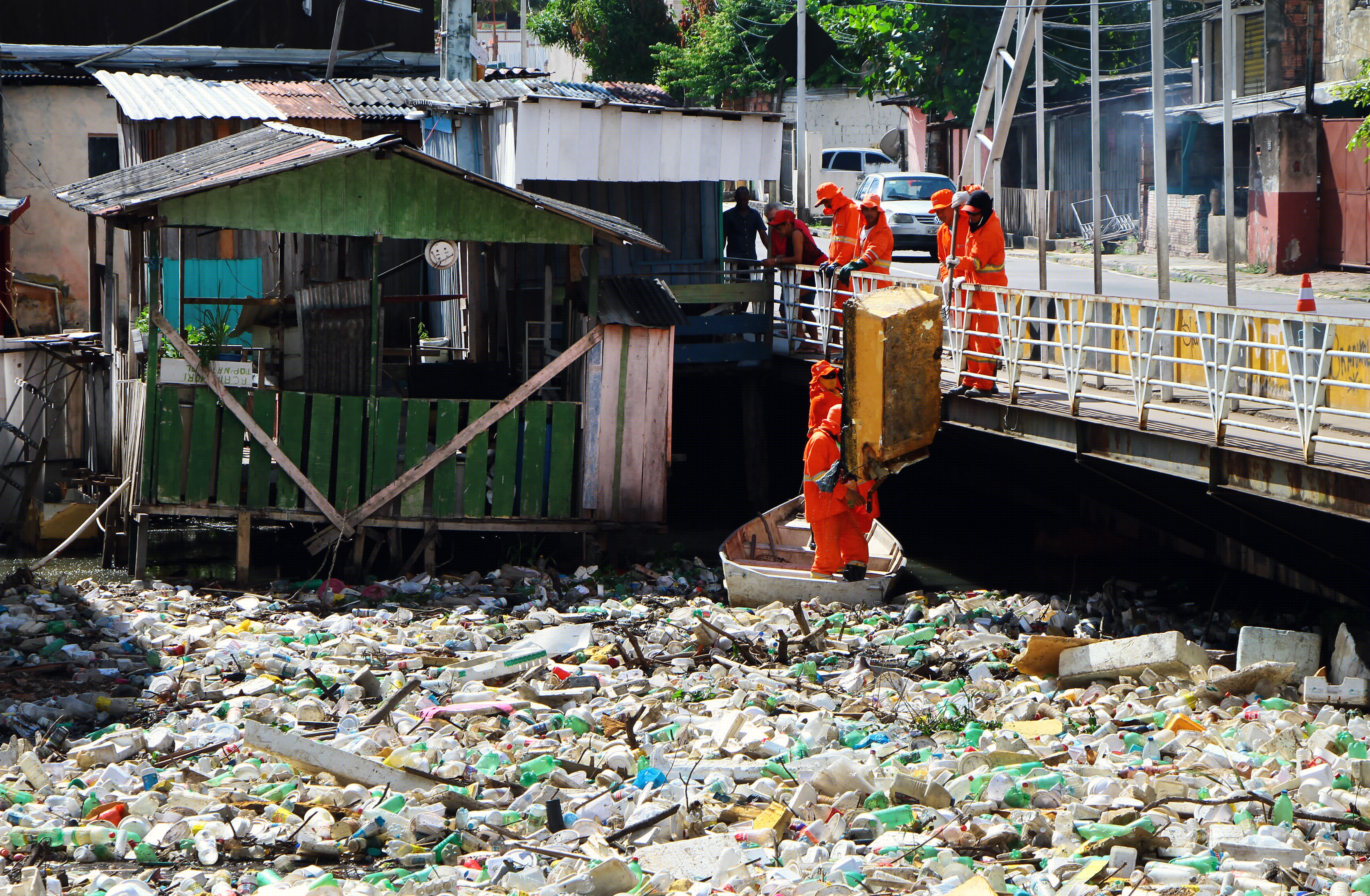 - Cerca de 30 toneladas de lixo são retiradas diariamente dos igarapés de Manaus-AM, informou a prefeitura do município em 2019, o que representava um aumento de 43,9% em relação a 2014. R$ 1 milhão era o valor gasto por mês para a ação de limpeza. Edmar Barros/Amazônia Latitude