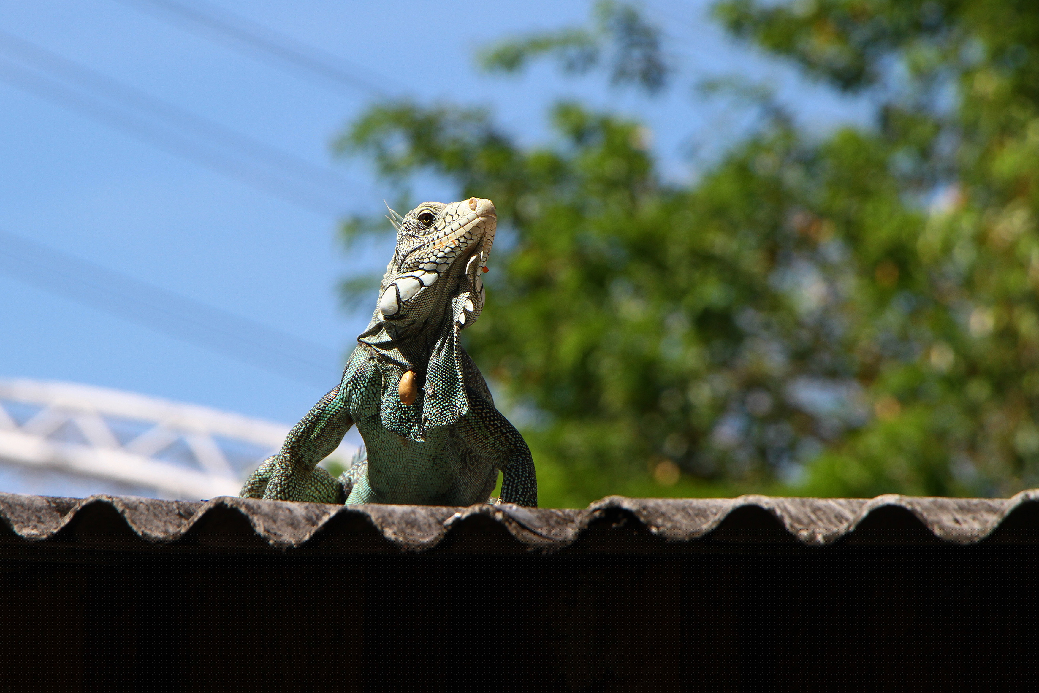 - Iguana é vista em telhado próximo de onde garis tentam recolher a grande quantidade de lixo acumulado no igarapé da ponte do bairro São Jorge, em Manaus. A destruição dos igarapés também é a interrupção dos ciclos de vida que dependem dos ecossistemas que os córregos integram. Edmar Barros/Amazônia Latitude