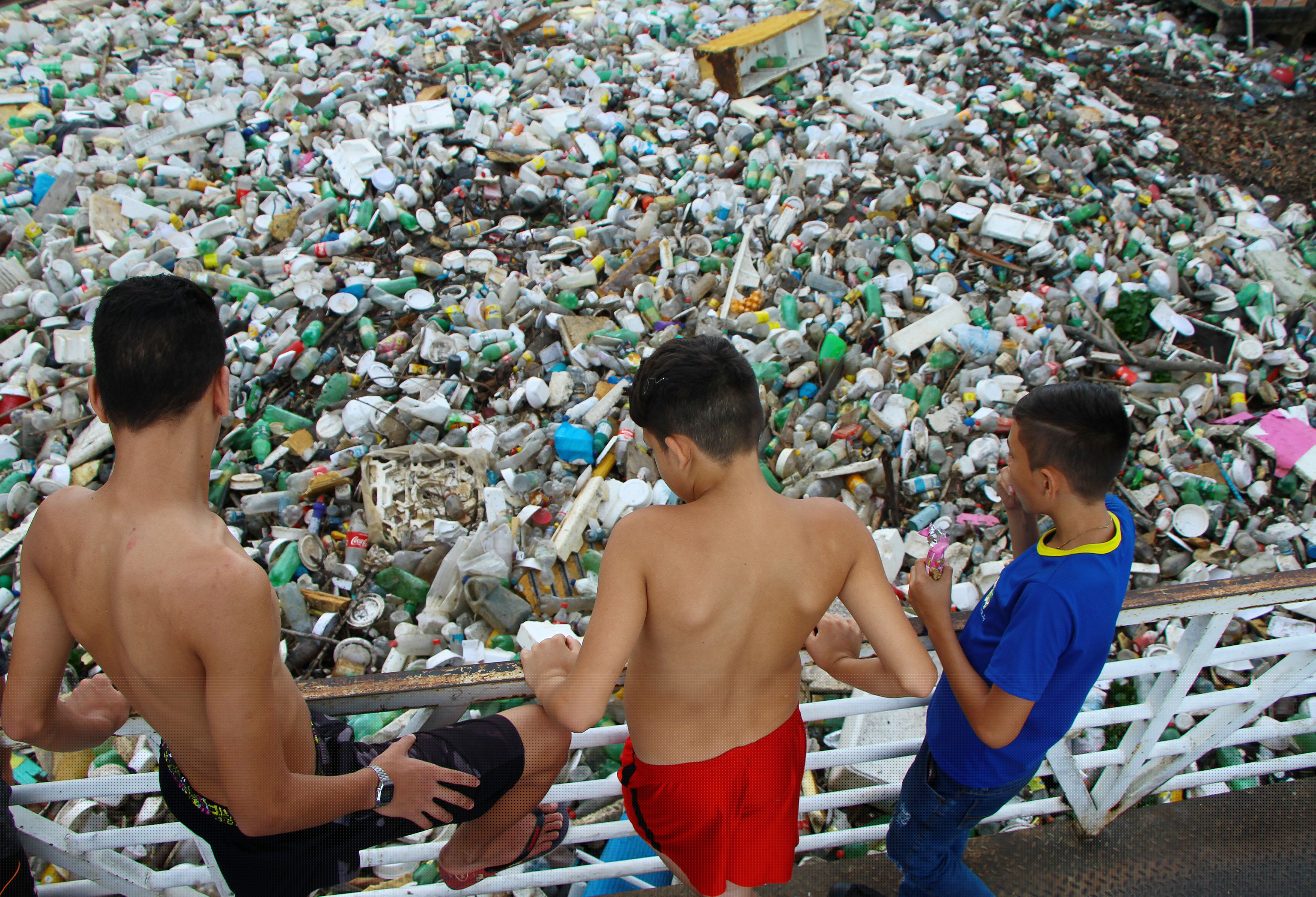 - Crianças observam grande quantidade de lixo acumulado no igarapé da ponte do bairro São Jorge, em Manaus (AM). A época de cheia dos rios e a falta de estrutura para escoamento e drenagem de águas pluviais provocam o acúmulo de lixo e o alagamento de casas na região. Edmar Barros/Amazônia Latitude