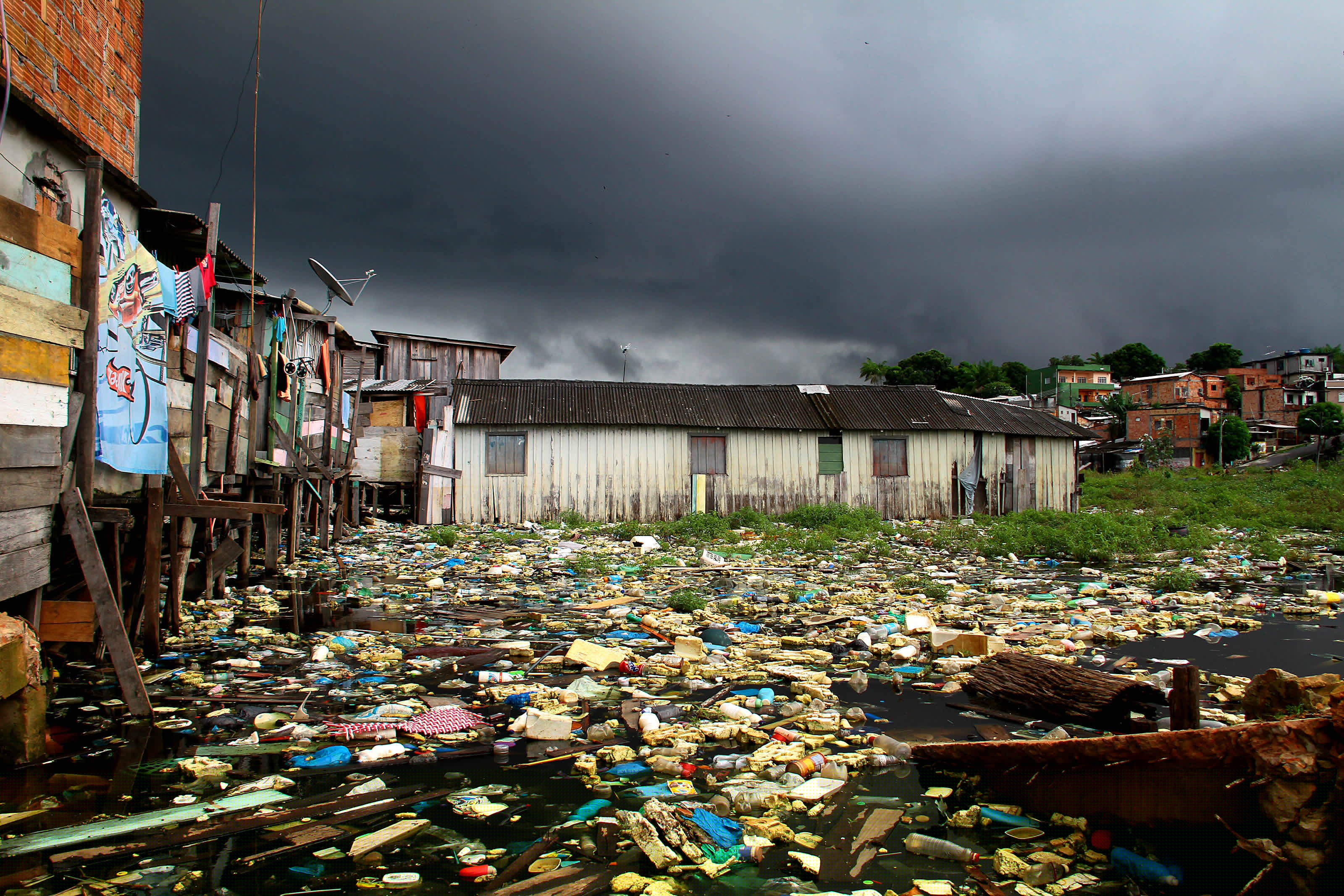 - Criança observa o lixo e a enchente no bairro da Matinha, em Manaus. Grande parte da população não possui acesso a saneamento básico e depende de poços artesianos para o abastecimento de água. Edmar Barros/Amazônia Latitude