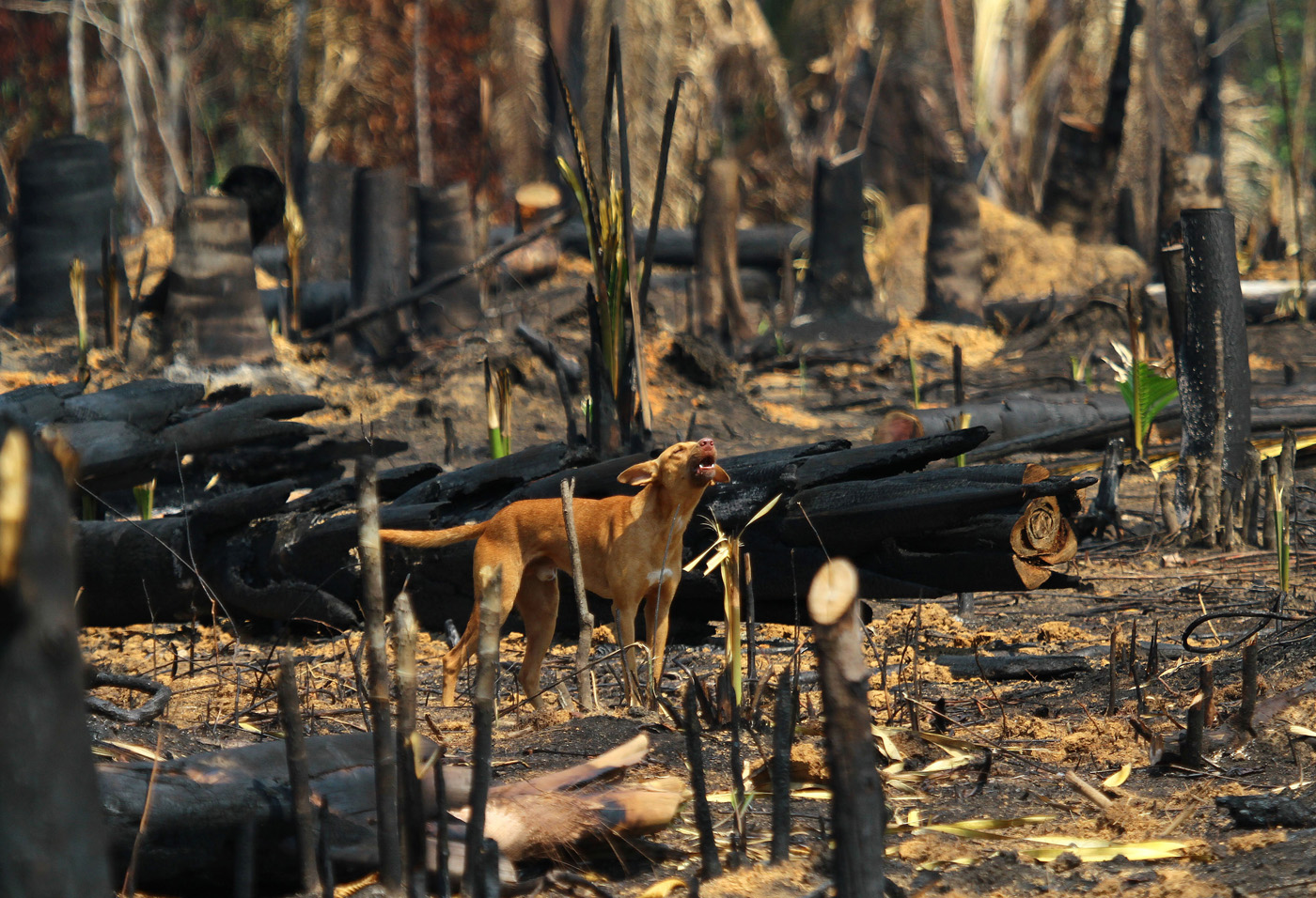 - Cachorro é visto em área desmatada e queimada na zona rural de Humaitá (AM) na manhã desta quinta(29).
