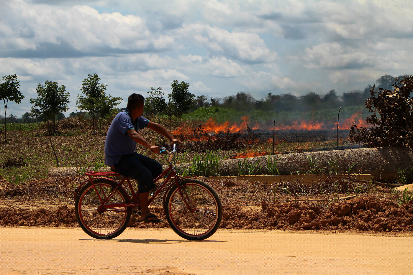 - Homem anda de bicicleta pelas ruas da cidade de Lábrea(AM) carregando um moto serra, nesta sexta(6), Lábrea é uma das cidades do Amazonas em Estado de Emergência, devido as queimadas e desmatamentos.