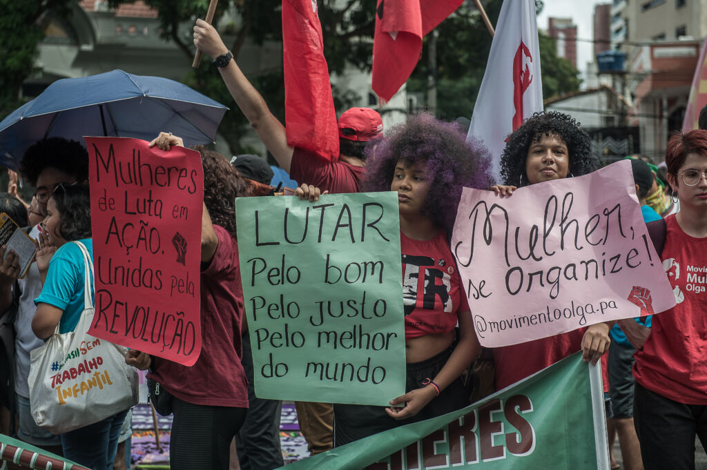 Feministas em Belém se concentraram no Largo do Redondo para a manifestação do Dia Internacional de Luta das Mulheres. Com cartazes e faixas com palavras de ordem contra o fascismo e o machismo, percorreram as principais avenidas da cidade, em direção à Assembleia Legislativa.