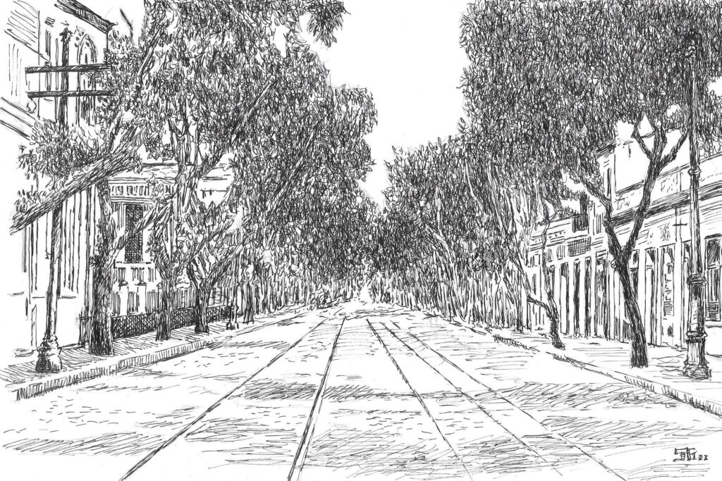 Avenida Generalíssimo Deodoro, Umarizal, em desenho de Sebastião Godinho.