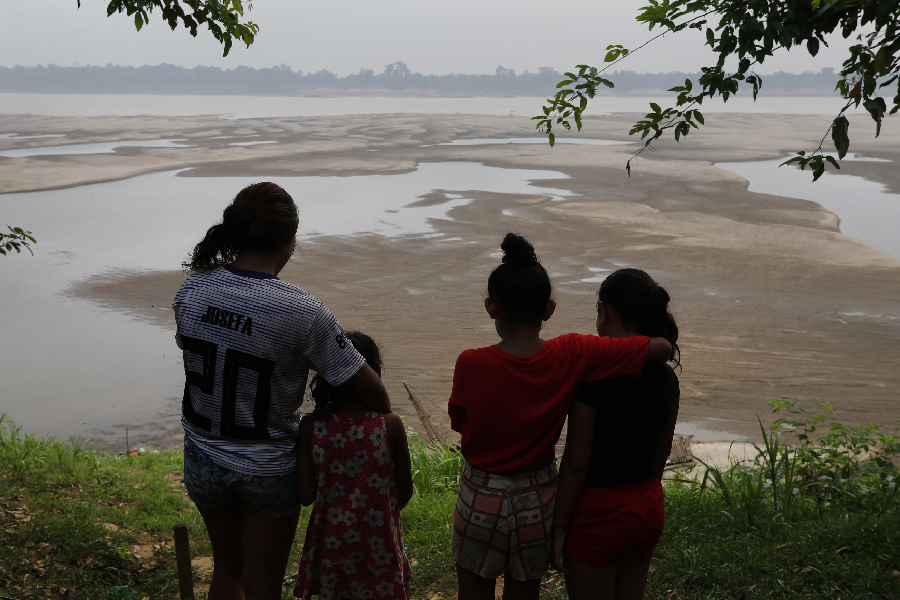Crianças observam o leito seco do rio Madeira durante a maior estiagem da história. Foto: Edmar Barros / Amazônia Latitude