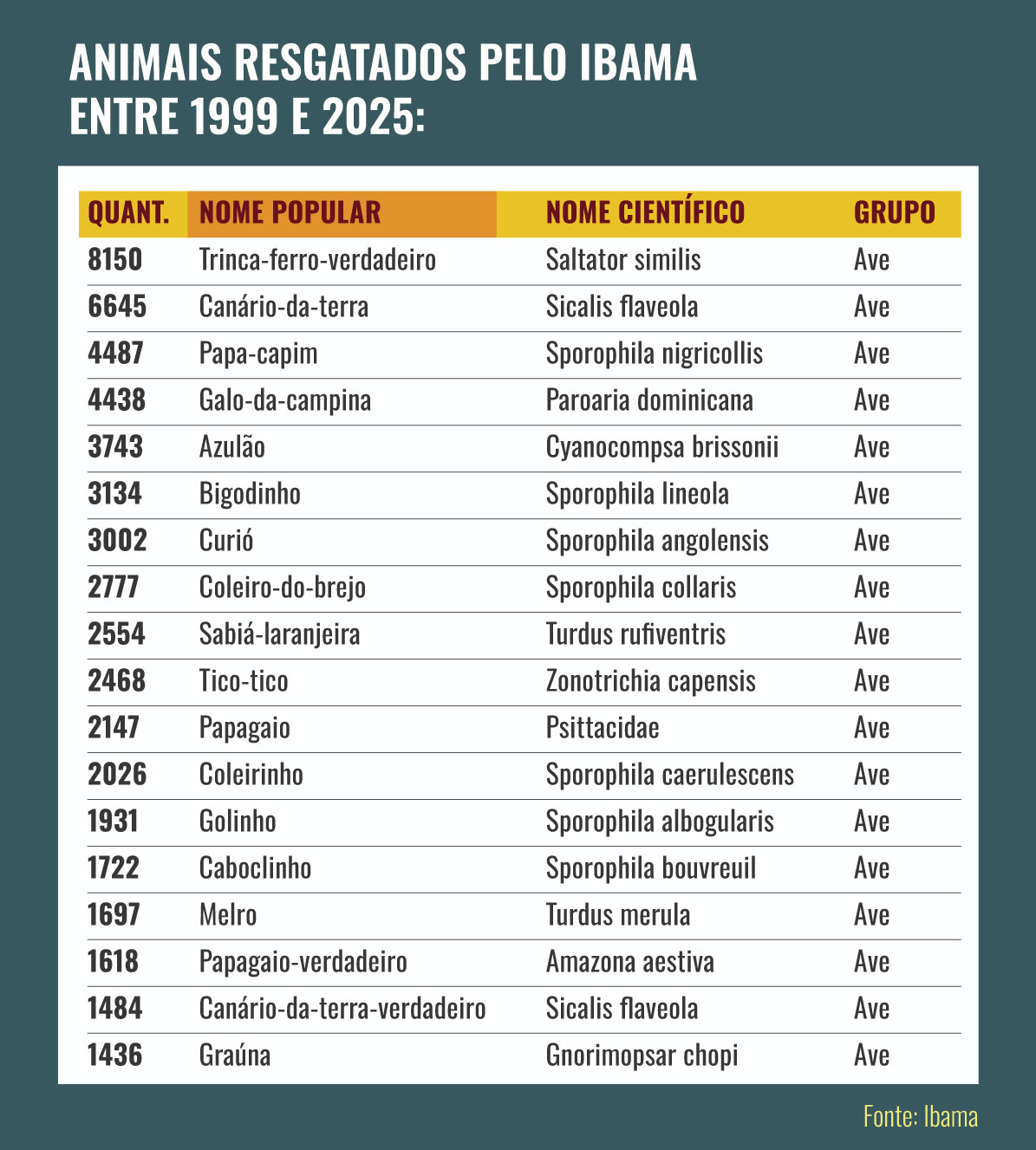 A história se repete diariamente. No Pará, uma operação de fiscalização realizada pela Polícia Militar Ambiental resultou no resgate de 225 canários-da-terra (Sicalis flaveola) transportados em uma embarcação em Óbidos, no oeste do Estado. Os pássaros estavam escondidos em sacos de lixo, sem qualquer tipo de ventilação, água ou alimento. O caso aconteceu em agosto de 2025.