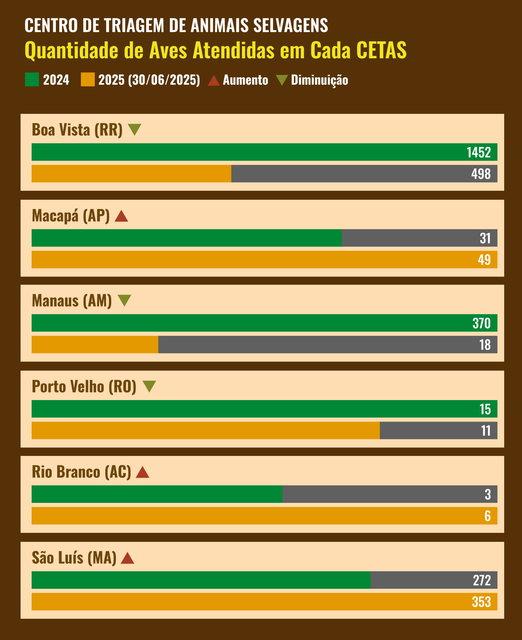 De acordo com o órgão, mais de 22.200 espécies silvestres foram apreendidos e encaminhados aos CETRAS apenas em 2024.