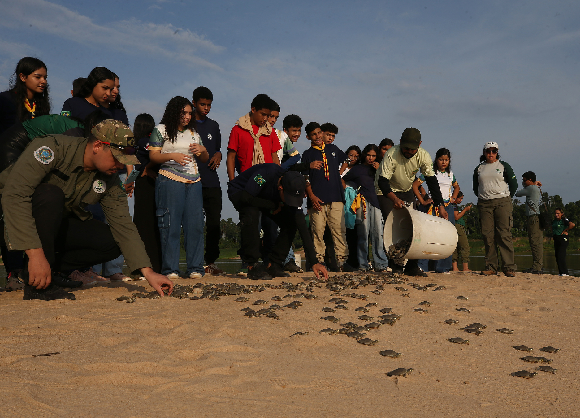 No dia seguinte ao pico, alunos da cidade foram levados à reserva. Dormiram nos barcos. Participaram da soltura simbólica de cerca de dois mil filhotes. Aprenderam, ali, com o corpo e com a experiência, o que nenhum discurso ensina sozinho: a vida só continua se for cuidada.